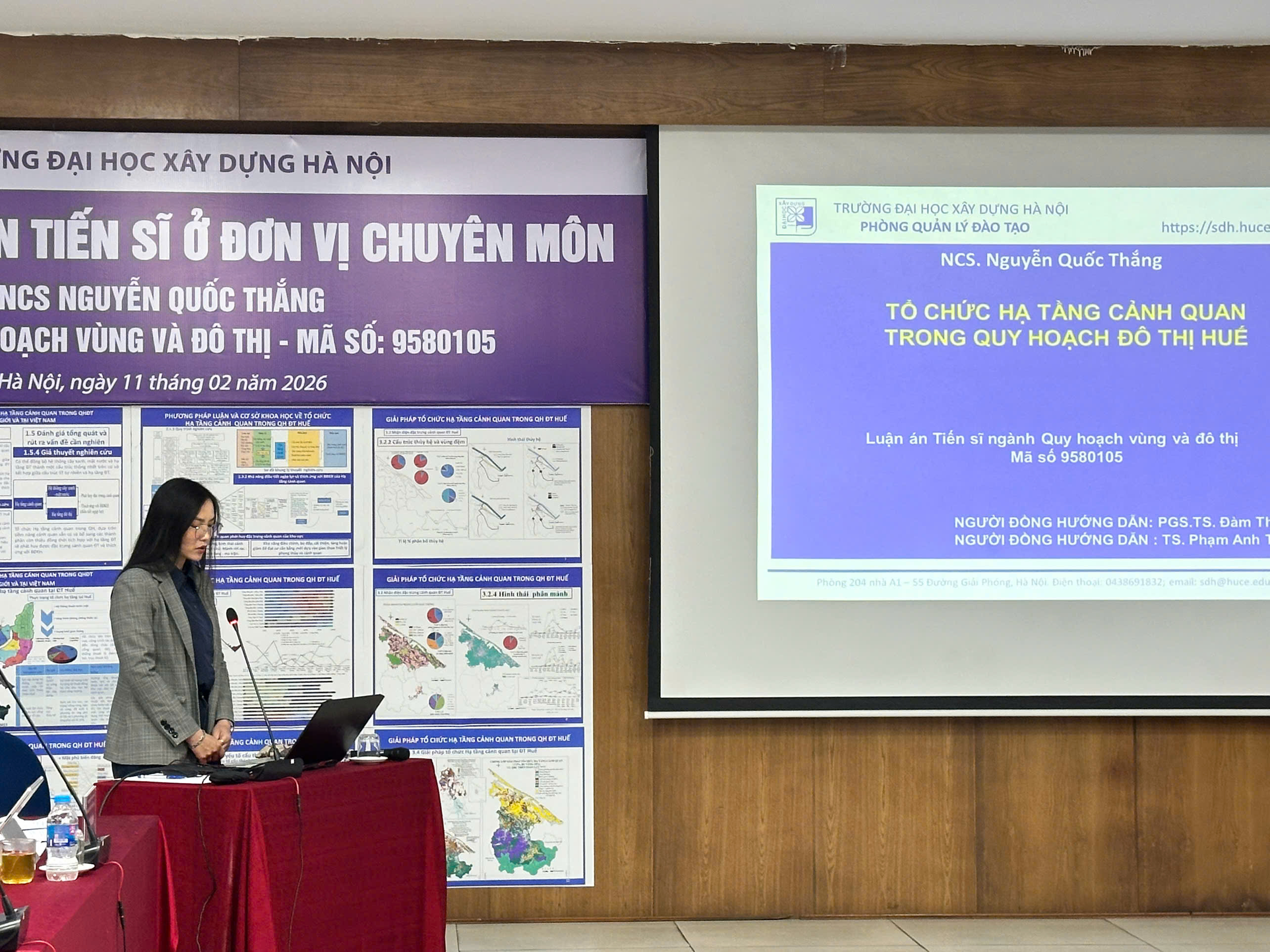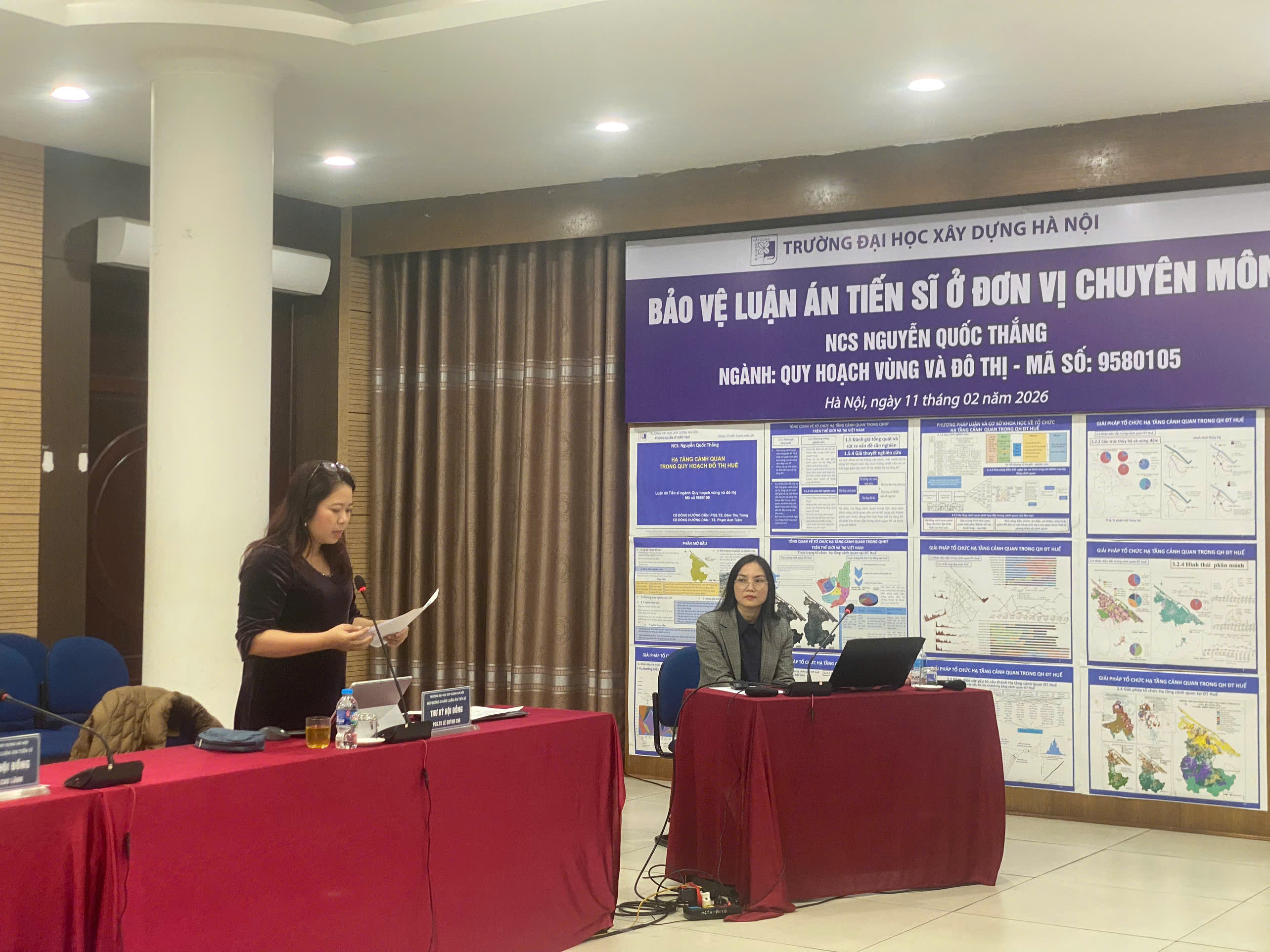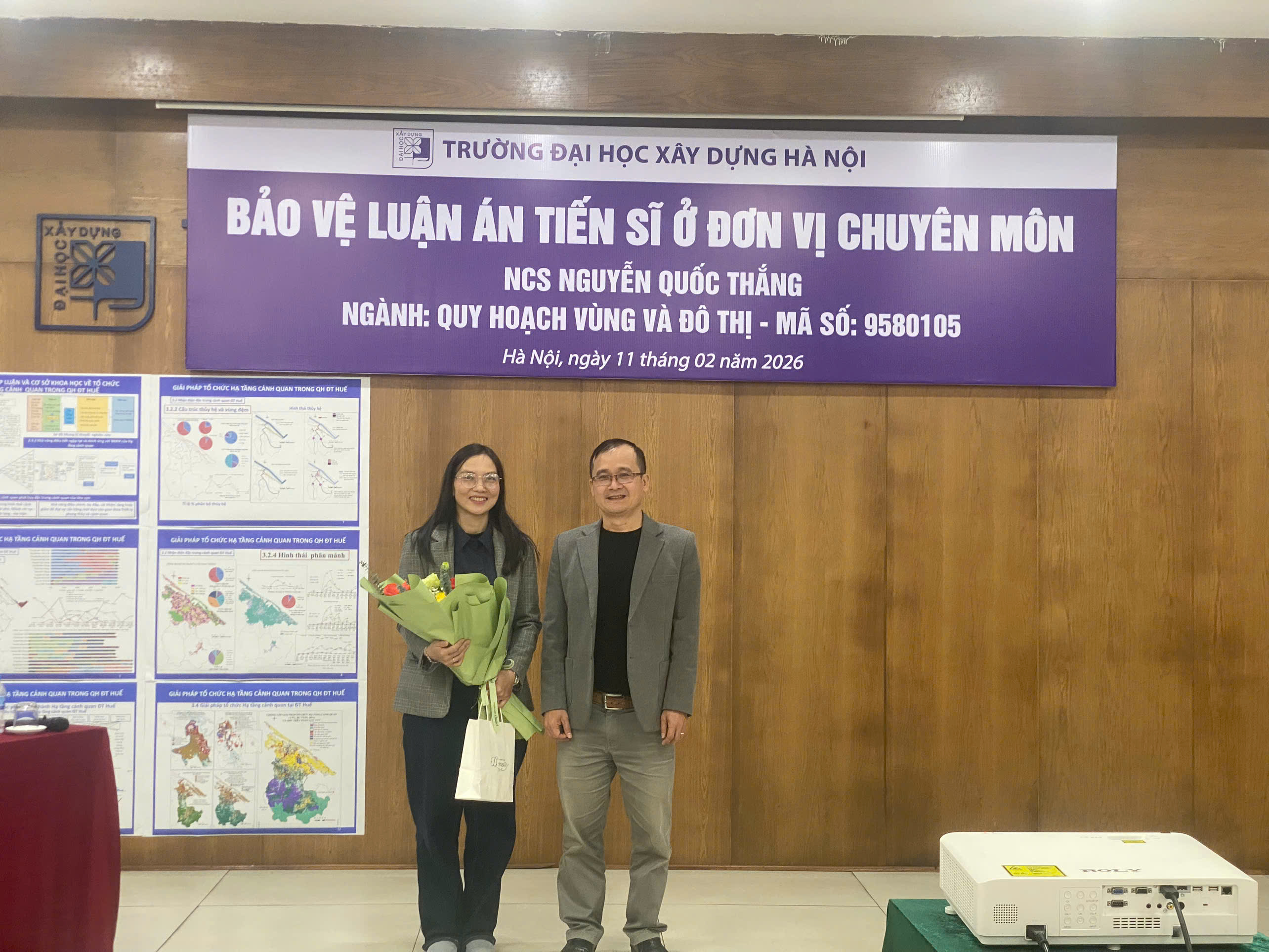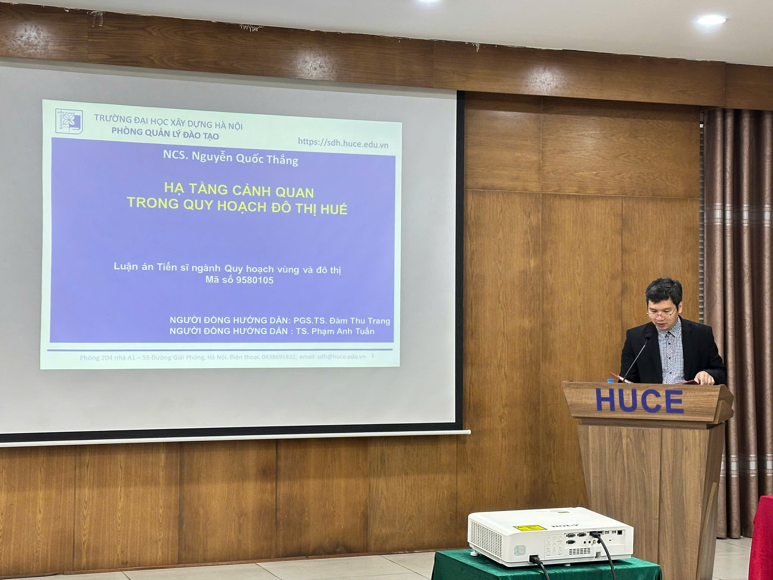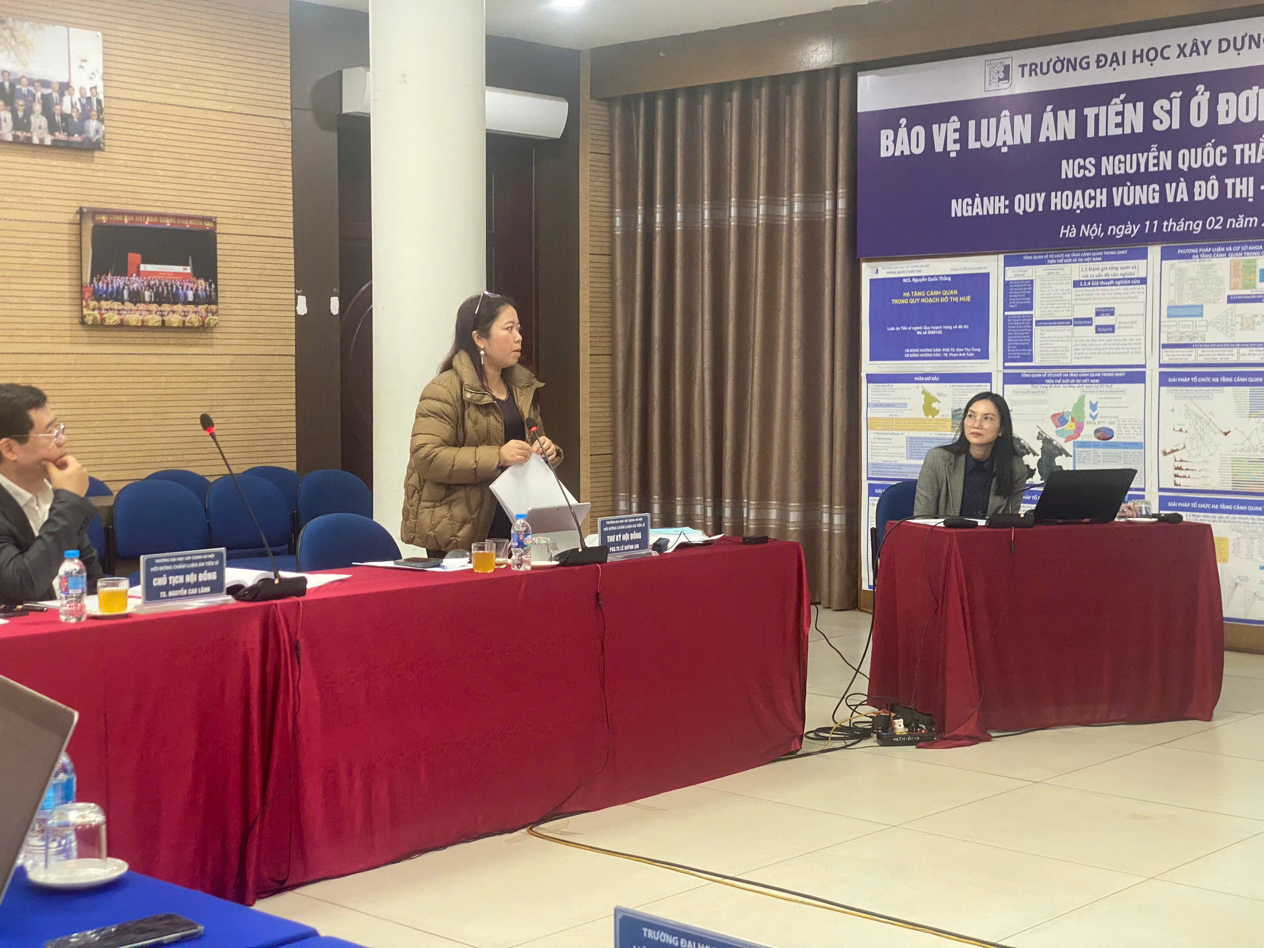 Hội đồng đánh giá luận án Tiến sĩ cấp Cơ sở đã tổ chức buổi bảo vệ cho NCS Nguyễn Quốc Thắng với đề tài: “Tổ chức hạ tầng cảnh quan trong quy hoạch đô thị Huế”.