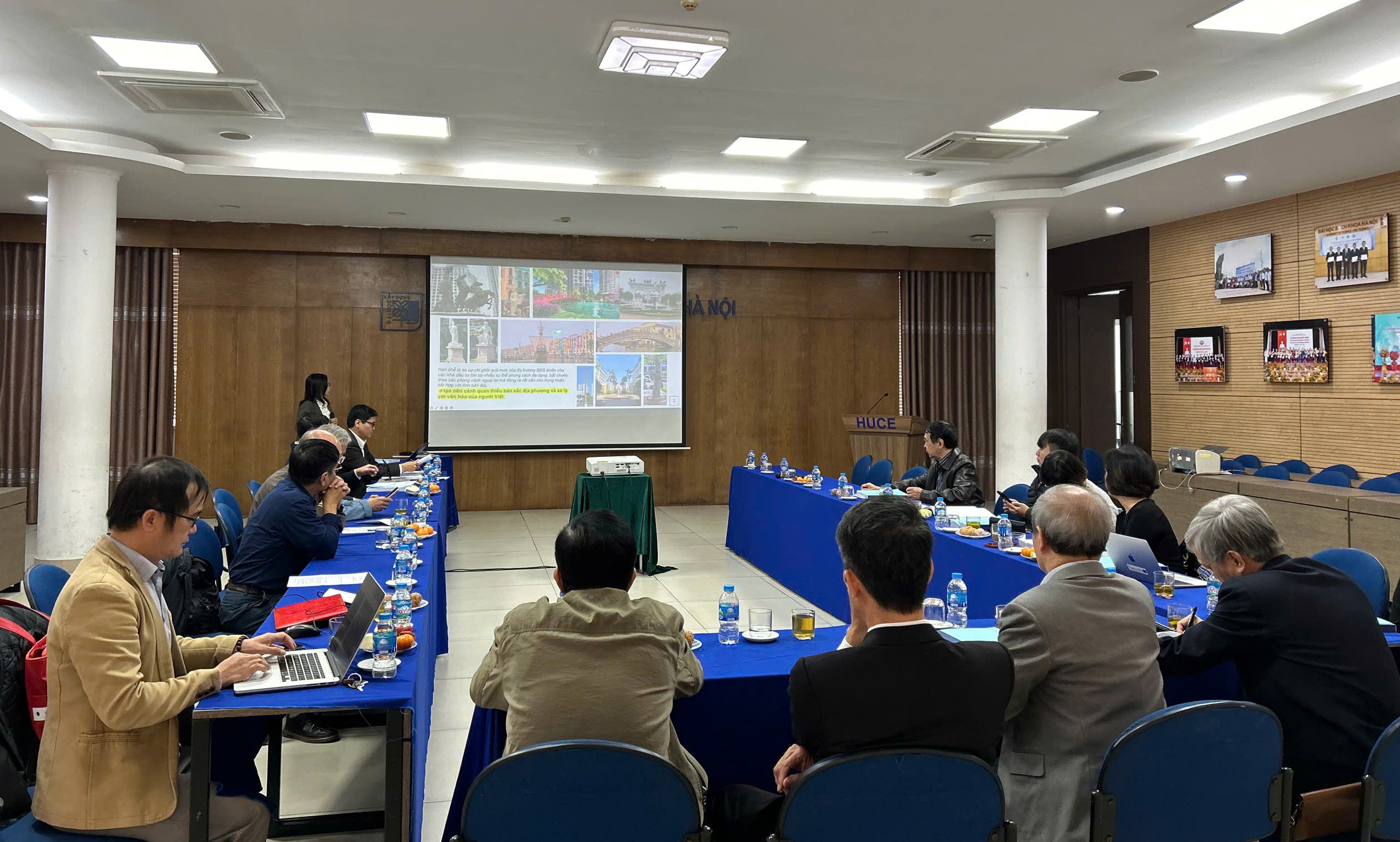 Ngày 26/11/2025 tại Trường Đại học Xây dựng Hà Nội, Nhóm Chuyên môn Lý thuyết và Lịch sử Kiến trúc đã tổ chức buổi Hội thảo mở rộng cho Nghiên cứu sinh (NCS) Doãn Minh Thu; Chuyên ngành: Kiến trúc; Mã số: 9580105; Đề tài: “Khai thác giá trị nghệ thuật vườn truyền thống trong tổ chức cảnh quan các khu đô thị mới tại Hà Nội”. Dưới sự hướng dẫn khoa học của GS.TS. Nguyễn Quốc Thông và TS. Phạm Anh Tuấn, NCS Doãn Minh Thu đã đạt được một số kết quả nghiên cứu nhất định và trình bày các nội dung chính của luận án trong buổi Hội thảo có sự góp mặt, tham gia phản biện của nhiều chuyên gia uy tín trong và ngoài Trường thuộc các lĩnh vực Quy hoạch, Kiến trúc, Cảnh quan đô thị.