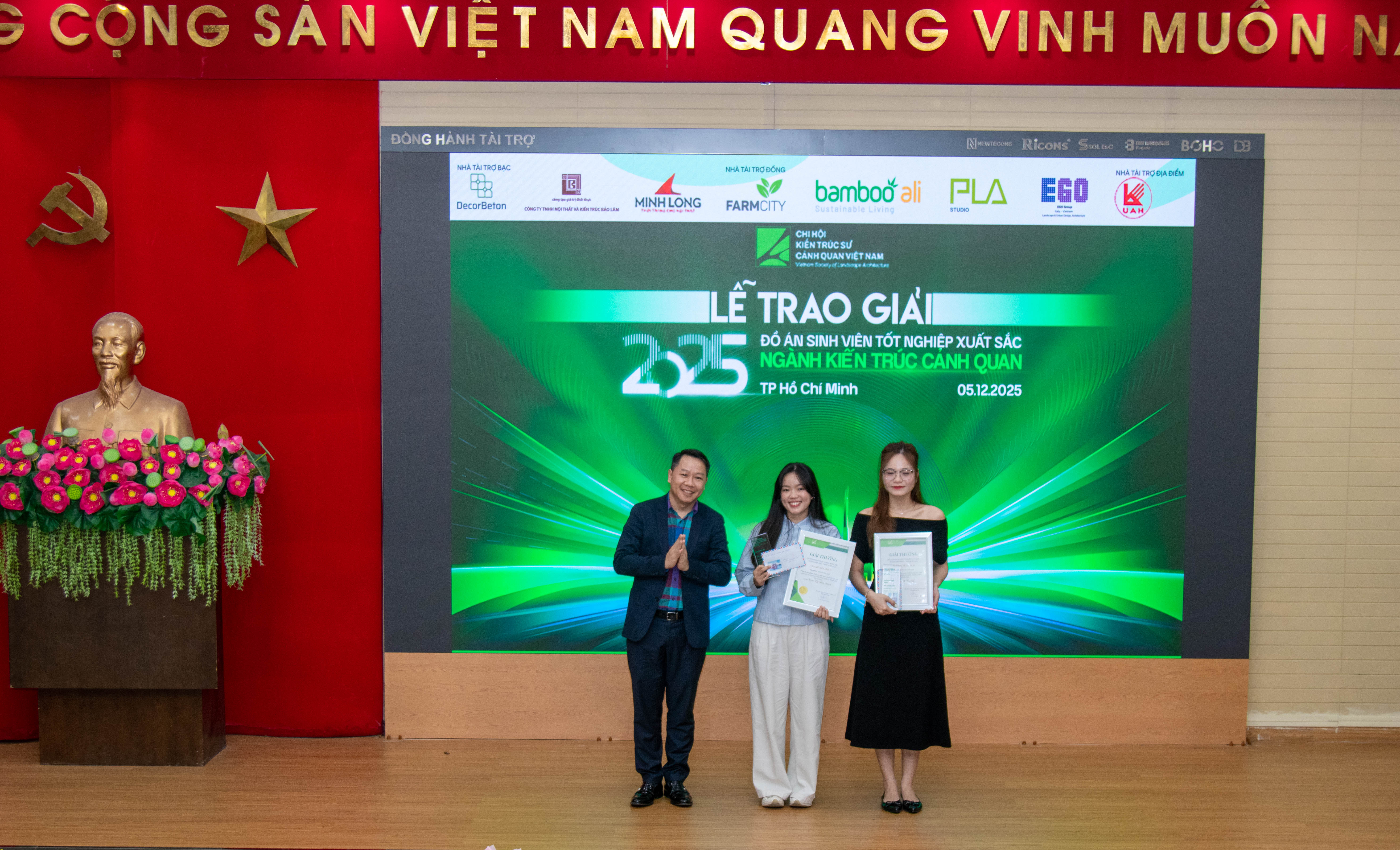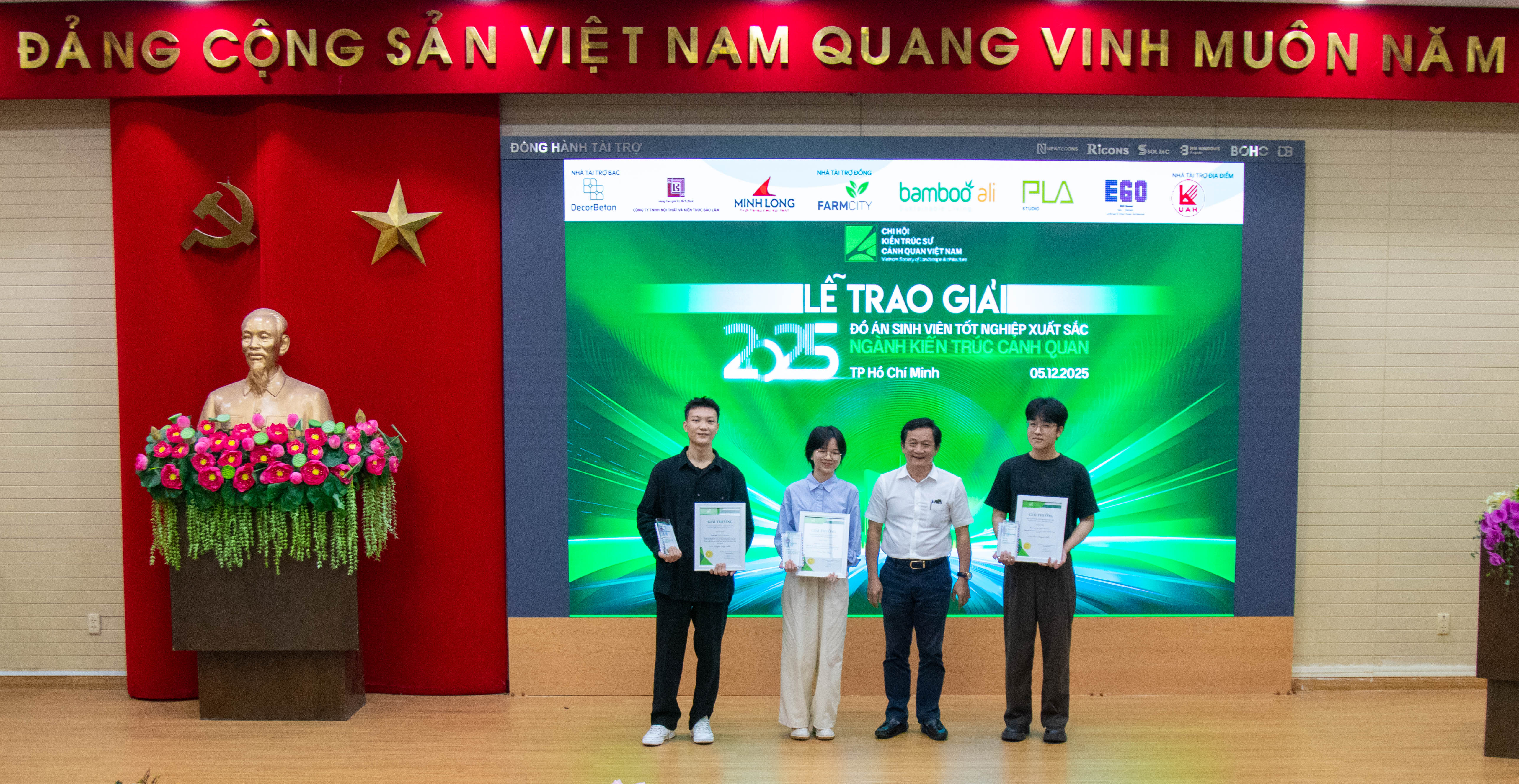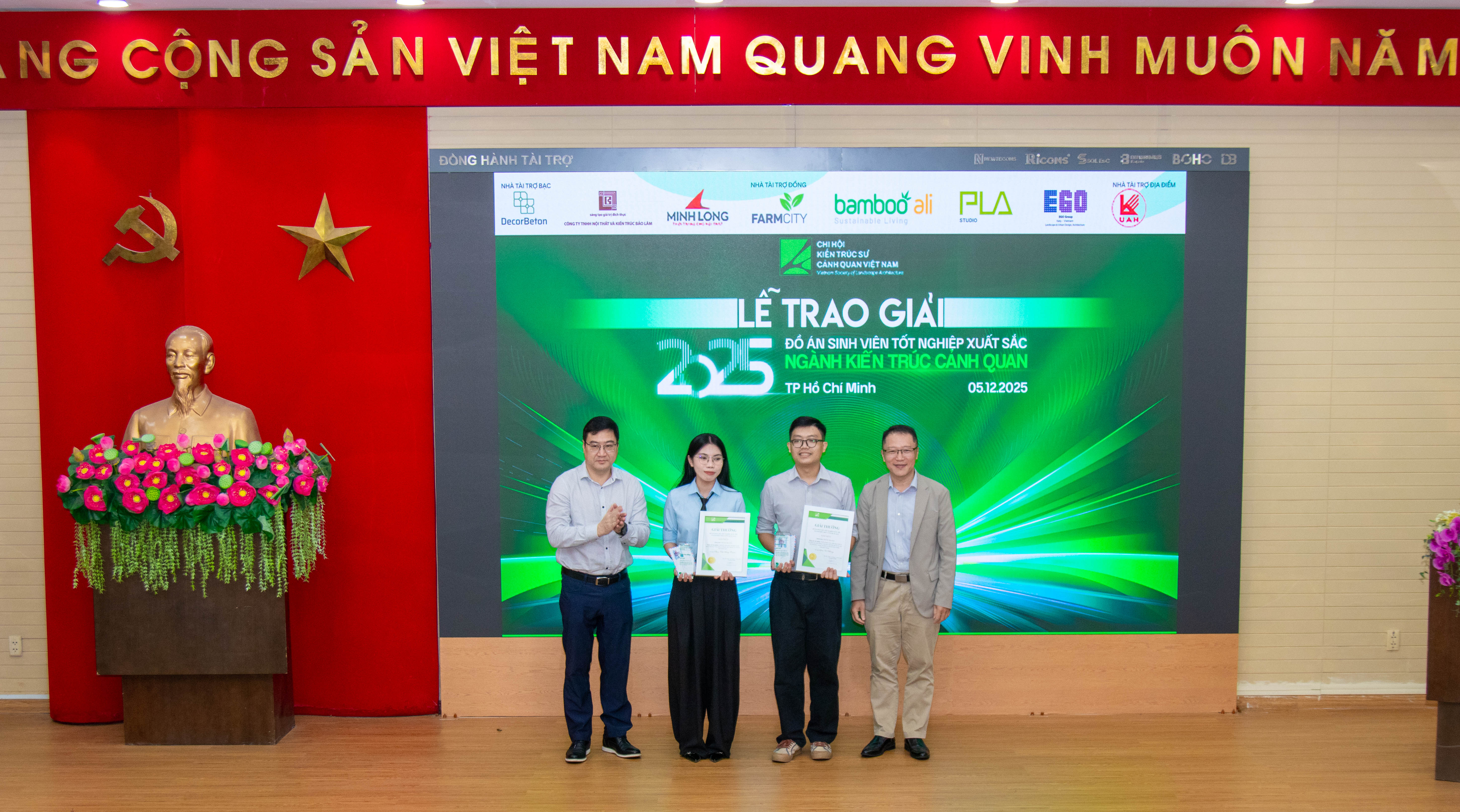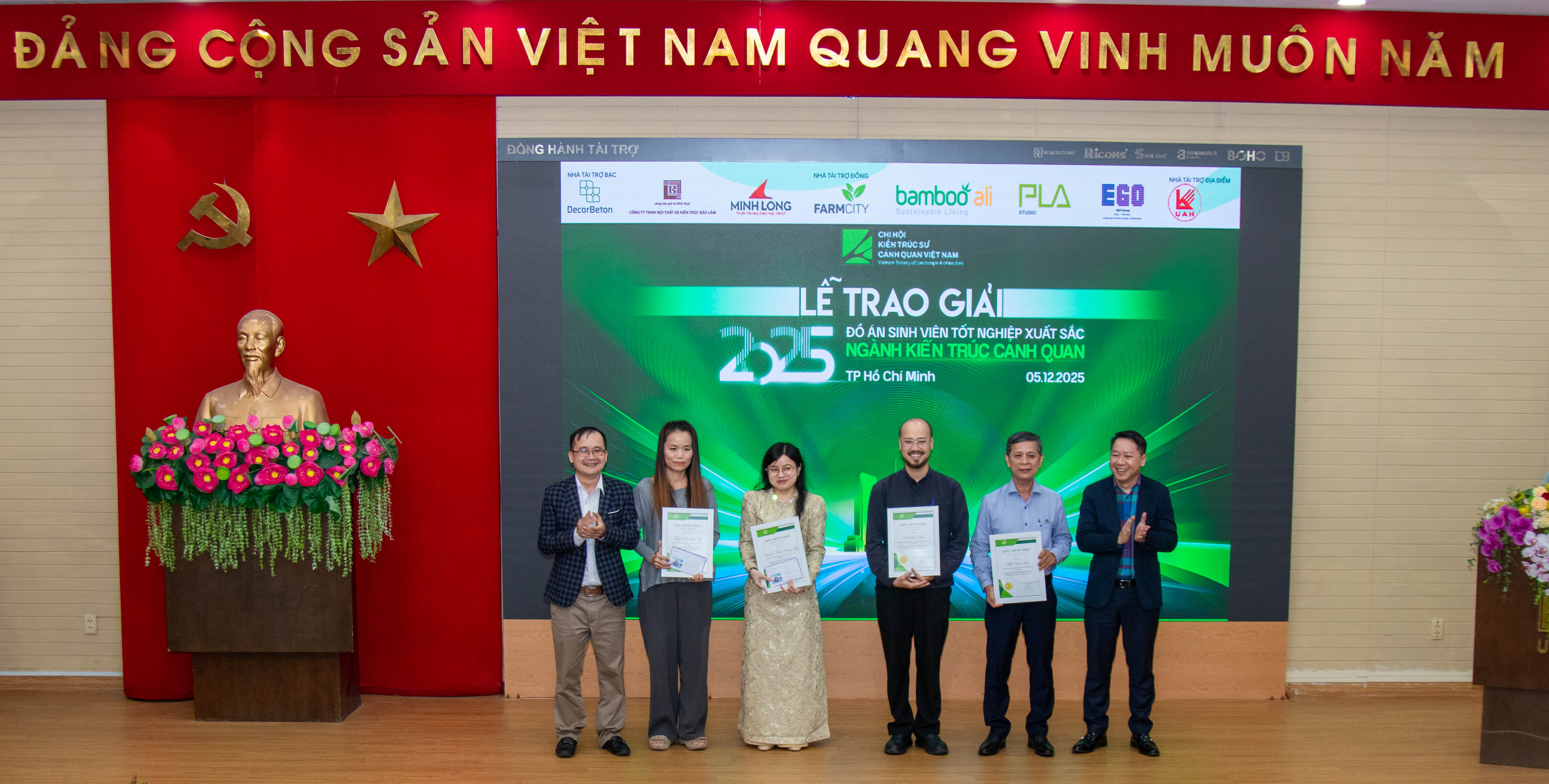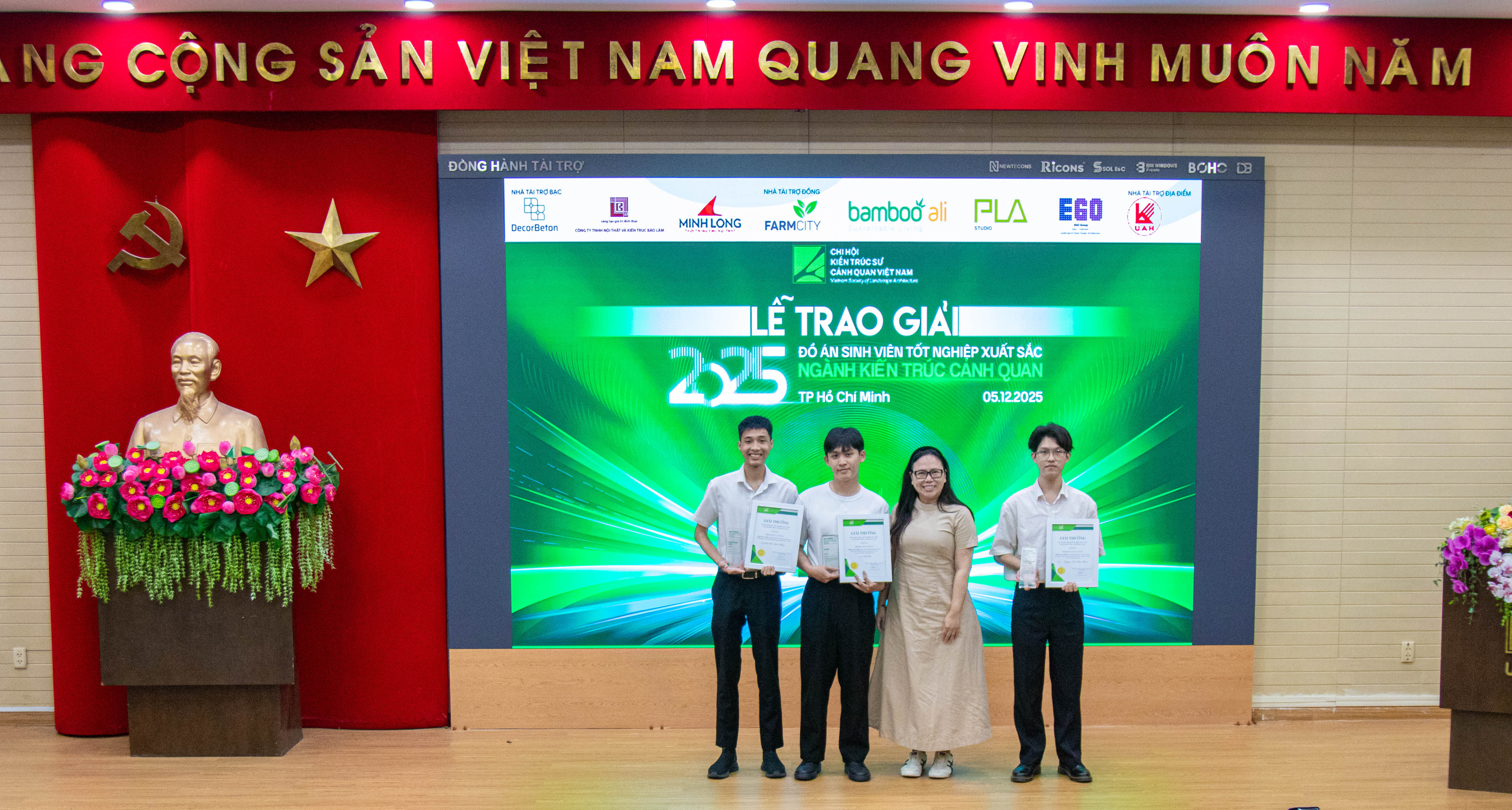 Sáng ngày 05/12/2025, tại Trường đại học Kiến trúc T.PHCM, Chi hội KTS Cảnh quan Việt Nam phối hợp tổ chức Lễ trao Giải thưởng Đồ án sinh viên tốt nghiệp xuất sắc ngành Kiến trúc Cảnh quan lần thứ 4 - năm 2025.