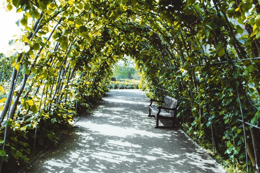 Hình 7: Một cấu trúc đường hầm xanh bằng cây dây leo, có thể là một chiến lược giảm thiểu cực kỳ hiệu quả để chống lại hiện tượng gió giật và dẫn dắt luồng gió làm mát vi khí hậu cảnh quan. Nguồn: https://windtechconsult.com